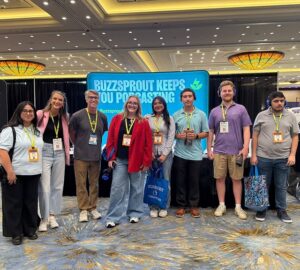 Students in FTDM 40210: Podcasting pose for a photo at the 2025 Podcast Movement conference.